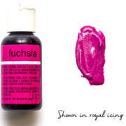 This Gel™ Liqua-Gel FUCHSIA 19.84G by Chefmaster Gels are freeze tolerant, fade and bleed resistant and will not break down icings. Formulated for use with whipped toppings, butter crème icings, fondant, cake batter, cookie dough and more.