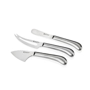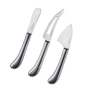 Three most versatile cheese knives. The hole in the Soft Cheese Knife reduces cheese from sticking. The arched blade of the Hard Cheese Knife will cut through hard cheese with ease. Spreader is perfect for creamy cheeses and pâté. The hollow stainless steel handle feels substantial yet comfortable and balanced.
