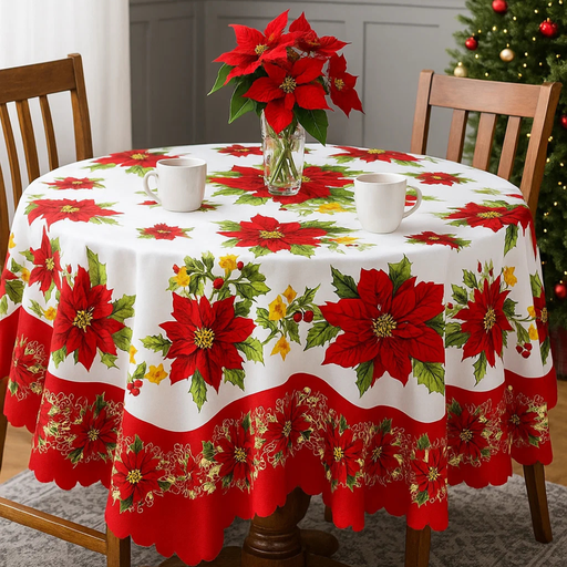 View full detailsElevate your holiday dining with this Round Poinsettia Deign Table Cloth 150cm. Featuring vibrant poinsettia patterns, it adds a festive touch to y...