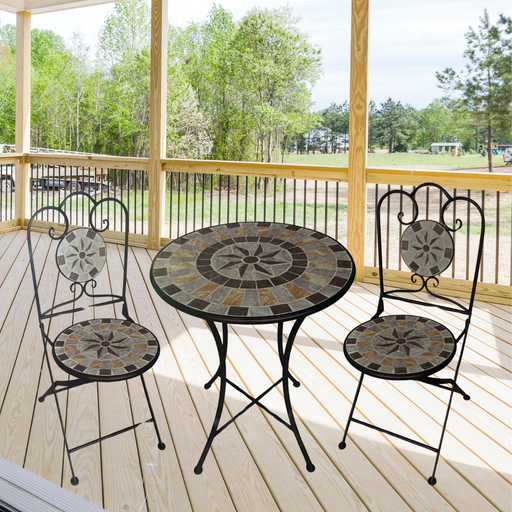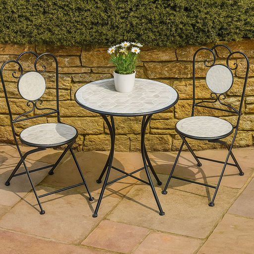View full detailsAdd a touch of sophistication to your outdoor space with the Mosaic Round Table and 2 Chair Set Black and White. This elegant 3-piece set features ...