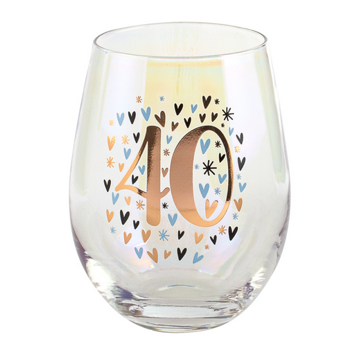 View full detailsCelebrate the vibrant 40th milestone with the stunning 40th Rainbow Pastel/Gold Stemless Wine 600ml. This 600ml glass is beautifully designed with ...