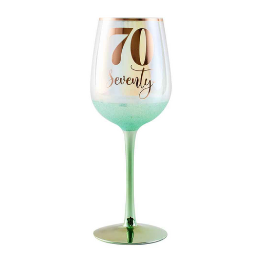 View full detailsRaise a toast to 70 wonderful years with the vibrant 70 Glitterati Wine Glass Green 430ml. This 430ml glass features a stunning green hue with a gl...