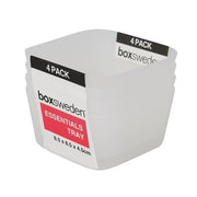 Organise your home and office with our Essentials Tray 8.5x8.5x4.5cm 4pk. Coming in a pack of four, our durable design can be used to store any assorted goods whether it be in the bathroom, kitchen, or office!