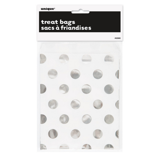 Foil Dots Silver 8 Treat Bags 18.3cm x 13.3cm