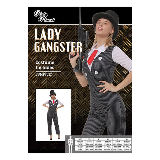 View full detailsThe Lady Gangster Costume (Size M) is a fierce and fashionable take on the classic gangster look. With a stylish pinstriped design, this outfit exu...