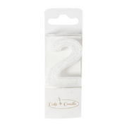 This Mini Glitter Candle WHITE - Number 2 can brighten up any cake with its elegance and quality.