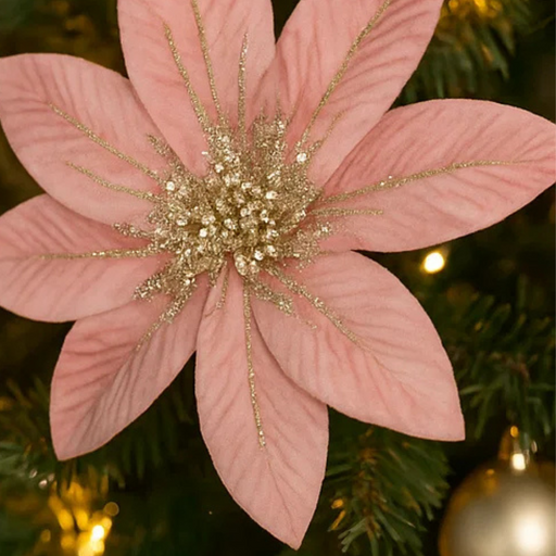 View full detailsPrice is for ONE piece. Design Chosen at Random. Elevate your holiday décor with the elegant charm of our Pink Velour Rose with Rose Gold Leaves As...
