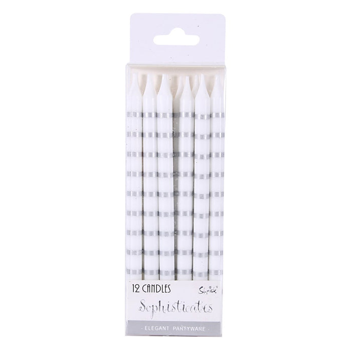 Silver Stripe Birthday Candles 12.5Cm Pk Of 12