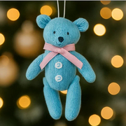 Blue Fabric Teddy Hanging Christmas Deco 21cm