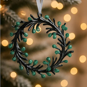 Acrylic Wreath W/Emerald Glitter Tree Ornament 14cm