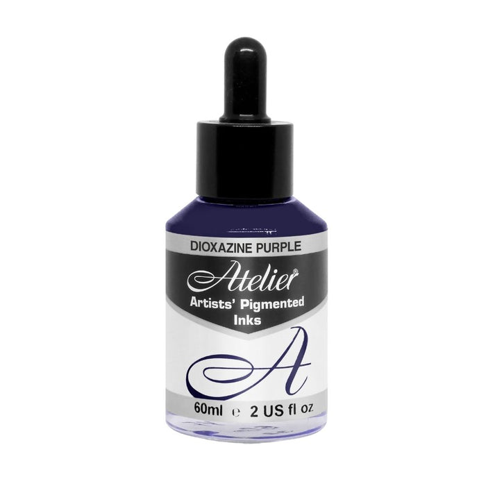ATELIER PIGMENTED INK - DIOXAZINE PURPLE 60ML is a professional ink, perfect for a variety of artist-quality work either diluted or undiluted, such as transparent washes, layers, drawing, calligraphy and vibrant tonal artwork. Use them with brushes, airbrushes, calligraphic pens, or any other element on multi-surface papers, board, canvas, or wood.