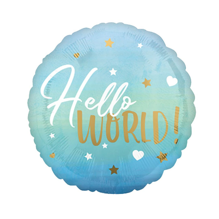 Foil Balloon Standard 45cm HX Blue Baby Boy Hello World