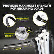 Cable Ties Releasable 250mm x 7.2mm 12pc a durable self-lock cable tie provides maximum strength for securing loads and smooth surface Burrs. Fast, easy, and convenient for a wide variety of jobs.
