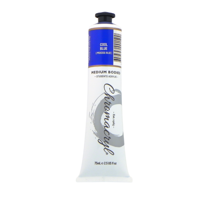 Include this CHROMACRYL ACRYLIC PAINT - COOL BLUE (PROCESS BLUE) 75ML in your art materials.