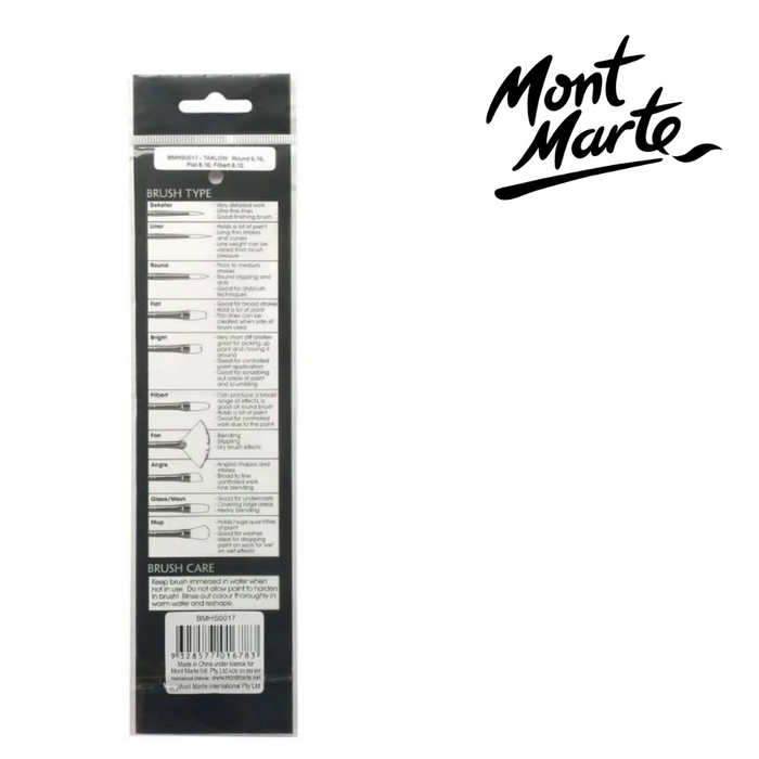- 6 brushes included (1 x Round 6,1 x Round 16,1 x Flat 8,1 xFlat 10,1 x Filbert 8 and1 x Filbert 10)