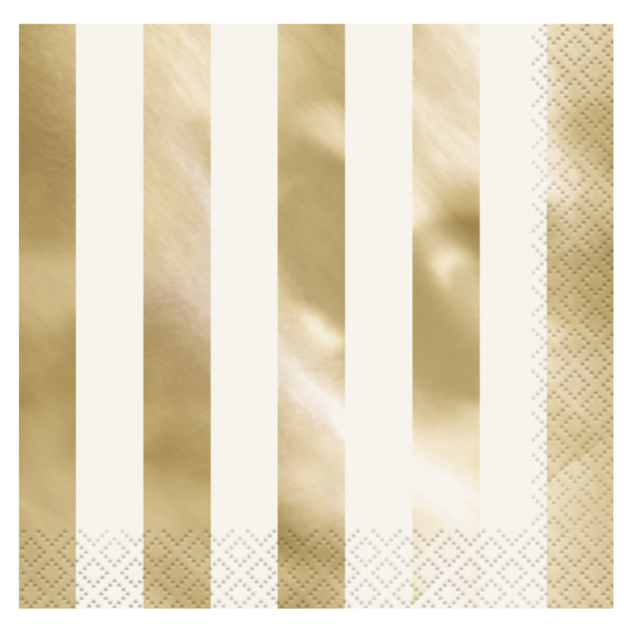 Foil Stamped Stripes Gold 16 Luncheon Napkins 2ply 33cm x 33cm