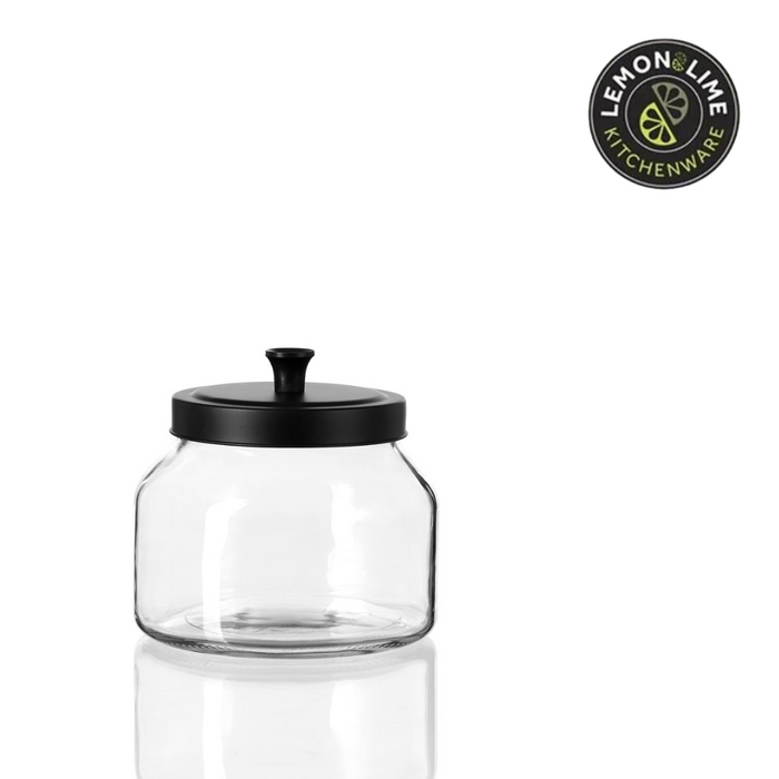 The Lemon and Lime Cosmo Glass Jar 1.6L is made of sturdy glass and has a matte black airtight handled lid to keep the contents fresh and complete the entire style. Our Cosmo collection is perfect for pantry storage or a chic display, and it will enhance any area you decide to put on show.