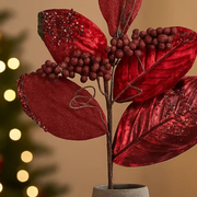 Magnolia Glitter Leaf Stem Red 61cm