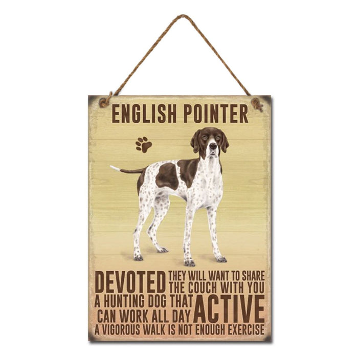 Introducing our Metal English Pointer Hanging Sign - a charming and unique decorative piece that will add character to any space. Measuring 20x27cm, this sign features a beautifully crafted English Pointer dog design, making it the perfect addition to your home, office, or even as a gift for a fellow dog lover.