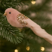 Pink Velour Bird W/clip 3x7x30cm