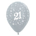 Sempertex Age 21 Satin Pearl Silver Latex Balloons 30cm 6pk