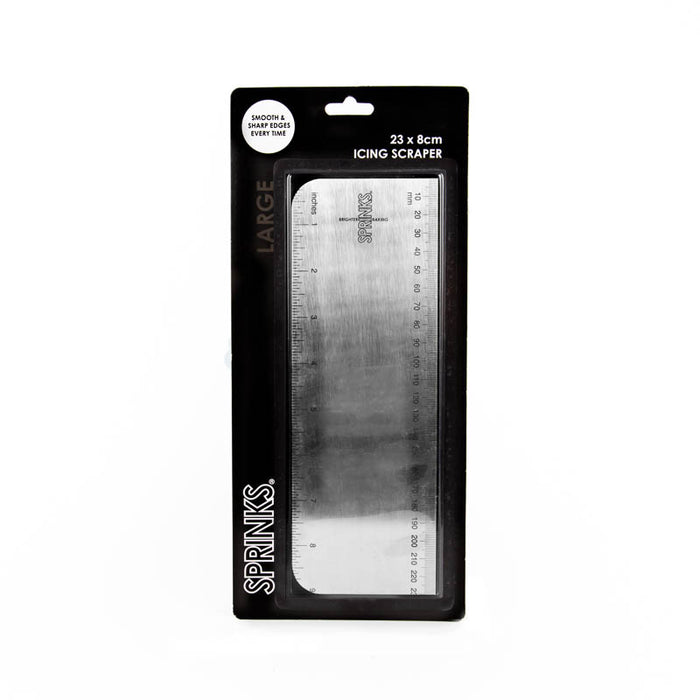 Ensure that you have smooth and clean edges on buttercream and ganache cakes with this easy to use stainless steel icing scraper.