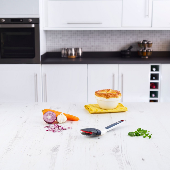 The Zyliss Silicone Basting Brush has mesh between bristles holds and releases more sauce. Perfect for marinades and barbeques.